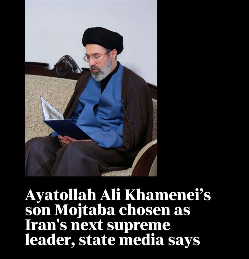 IRAN—Ayatollah Seyyed Mojtaba Hosseini Khamenei, the late Supreme Leader Ayatollah Ali Khamenei’s second son, has been chosen as the new Supreme Leader of the Islamic Republic of Iran, Iranian state television and several official media announced Wednesday.